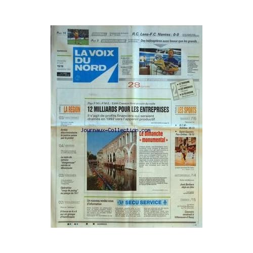 ![VOIX DU NORD (LA) [No 14685] du 15/09/1991 - PLAN PMI - PME ET CRESSON - 12 MILLIARDS POUR LES ENTREPRISES - ARRETE DISCRIMINATOIRE - LA JUSTICE SAISIE PAR LE PREFET - LA NOTE DE SERVICE DANGEREUSE RETIREE ET DESAVOUEE A AMIENS - FRESNES - OPERATION COUP DE POING AU PEAGE DE L'A1 - LES SPORTS - BASKET - RALLYE DE BETHUNE ET BARBARA - TENNIS - FOOT VOIX DU NORD (LA) [No 14685] du 15/09/1991 - PLAN PMI - PME ET CRESSON - 12 MILLIARDS POUR LES ENTREPRISES - ARRETE DISCRIMINATOIRE - LA JUSTICE SAISIE PAR LE PREFET - LA NOTE DE SERVICE DANGEREUSE RETIREE ET DESAVOUEE A AMIENS - FRESNES - OPERATION COUP DE POING AU PEAGE DE L'A1 - LES SPORTS - BASKET - RALLYE DE BETHUNE ET BARBARA - TENNIS - FOOT](https://images-eu.ssl-images-amazon.com/images/I/51mGlAaTZbL._SS500_.jpg)