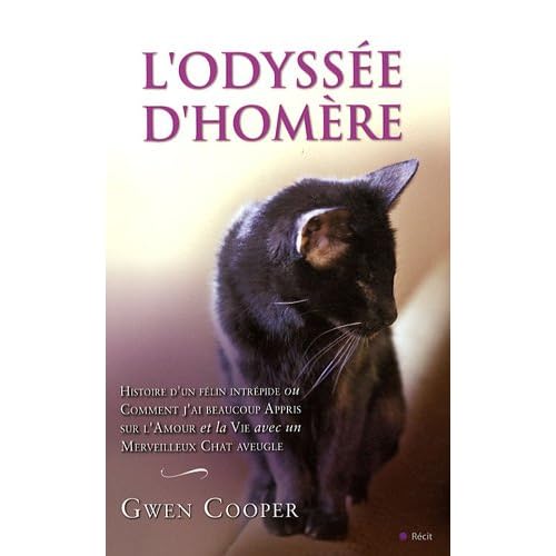 Comment un chat peut-il redonner à quelqu'un l'envie de vivre ? C'est cette magnifique histoire, la sienne, que raconte dans ces pages Gwen Cooper. Fraîchement séparée, habitant chez une amie en attendant de trouver un appartement et dans une situation financière précaire, Gwen n'avait vraiment pas besoin de l'arrivée d'un chat ! Pourtant, le petit félin aveugle qui entre dans sa vie la bouleverse irrémédiablement... Gwen l'appelle Homère, car, comme le poète aveugle, c'est un créateur d'histoires, tour à tour casse-cou, courageux, tendre et intrépide. Attendrissant et fascinant. Homère inspire et transforme la vie de tous ceux qu'il rencontre. À son contact, ils réalisent que l'amour et le bonheur n'ont que faire des apparences et du regard des autres. Et que chaque petit moment vaut vraiment la peine d'être vécu...Broché=297 pages. Editeur =City Editions (7 octobre 2009). Langue =Français. ISBN-10=2352883334. ISBN-13=978-2352883333. Dimensions du produit=23,5 x 2,3 x 15 cm. Moyenne des commentaires client =4.8 étoiles sur 5 4 commentaires client. Classement des meilleures ventes d'AmazonChatsSciences humaines=295.534 en Livres (Voir les 100 premiers en Livres) .zg_hrsr { margin: 0; padding: 0; list-style-type: none; } .zg_hrsr_item { margin: 0 0 0 10px; } .zg_hrsr_rank { display: inline-block; width: 80px; text-align: right; } n°211 dans Livres > Nature et animaux > Animaux > n°50012 dans Livres >.Voici un récit initiatique au pays des poils soyeux .Homère petit chaton noir, trouvé et amené à un cabinet vétérinaire n'avait que peu de chance de s'en sortir , hormis uneopération chirurgicale (lui retirer ces petits yeux) personne ne voulait de lui, mais Gwen le recueille, et là commenceune merveilleuse histoire.Il est joyeux, courageux ,avec beaucoup plus de persévérence qu'un autre, Il enseigneà Gwen que dans la vie prendre des risques peut apporter bien des joies (belle leçon de vie malgré sa cécité) et aussi le goûtde se battre , car la vie n'est pas rose pour Gwen .Homère bouleverse tout dans la vie de sa maitresse, ainsi que la vie de deux autres chats (adoptés eux aussi) .Homère apprend a Gwen ce que veut dire aimer .J'ai changé d'avis sur les chats merci à toi Homère et tes congénères. Commequoi on en apprends tous les jours( Même des bêtes pas si bête).. L'incroyable histoire d'Homère, petit chat noir à qui on a du enlever les deux yeux pour lui sauver la vie quand il était chaton. Un vrai héros au quotidien pas ordinaire qui nous donne une bonne leçon de vie !. une des plus belle histoires de chats une belle leçon de vie,3 chats extraordinaires (quel chat ne l'est pas!!!) et une magnifique fin de livre plutôt originale!!!à faire lire à tous les amoureux de chats!!!. Belle histoire de courage et d'adaptation d'un adorable chat 'différent' . Ca redonne de l'espoir et de l'optimisme. Tout est possible dans la vie avec de l'amour..
